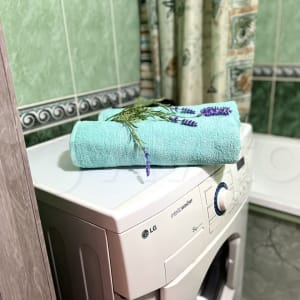 В квартире есть вся необходимая техника, стиральная машина автомат, кухня со всей необходимой посудой на всех членов семьи и техникой, раздельные ванна и туалет, постельное белье лучшего качества, махровые полотенца, посуда и столовые приборы для приготовления и употребления пищи на 4 персоны и более.